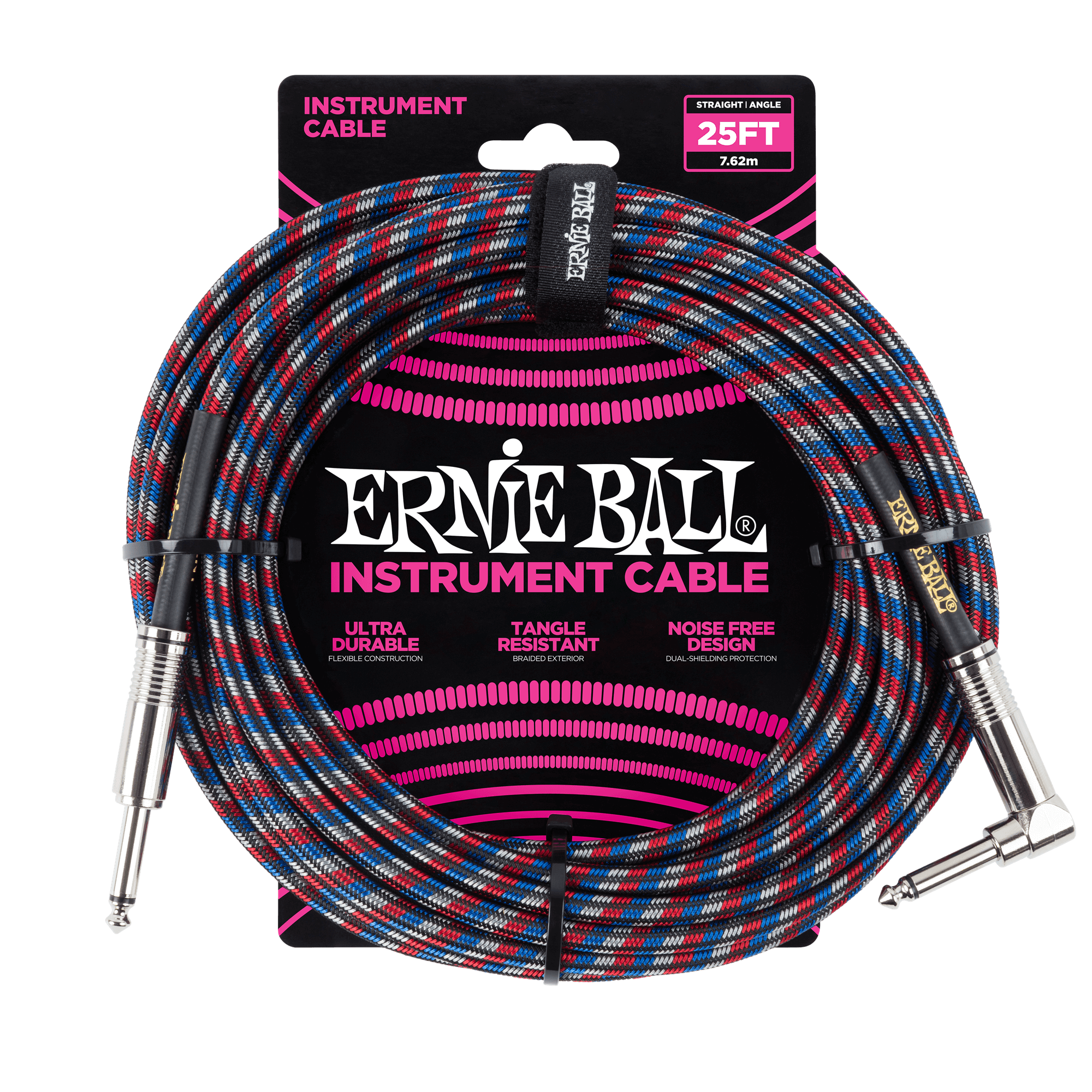Ernie Ball instrument cables feature a high-quality design made with superior components that are built to last. Dual-conductors deliver reliably clear tone with crisp highs, tight mids, and rich harmonics. Multiple shielding materials preserve the signal with low handling noise, and the braided jacket exterior provides a tangle-resistant experience. Cable length 25ft (7.62m).