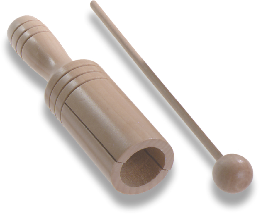 Solid wood tone block and mallet are used to provide a “hollow” wood tone.